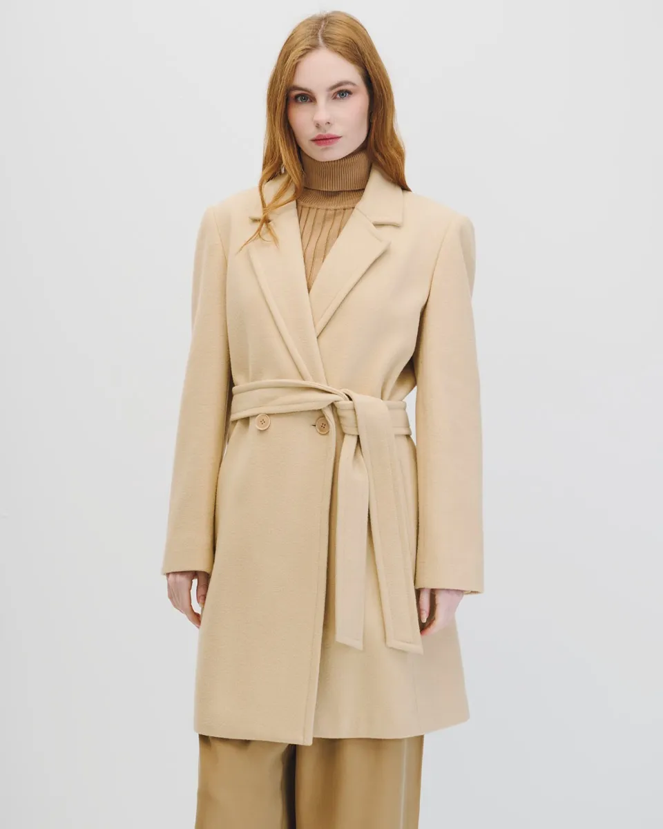 Abrigo Largo Cruzado Paño De Lana Camel Solapa De Pico