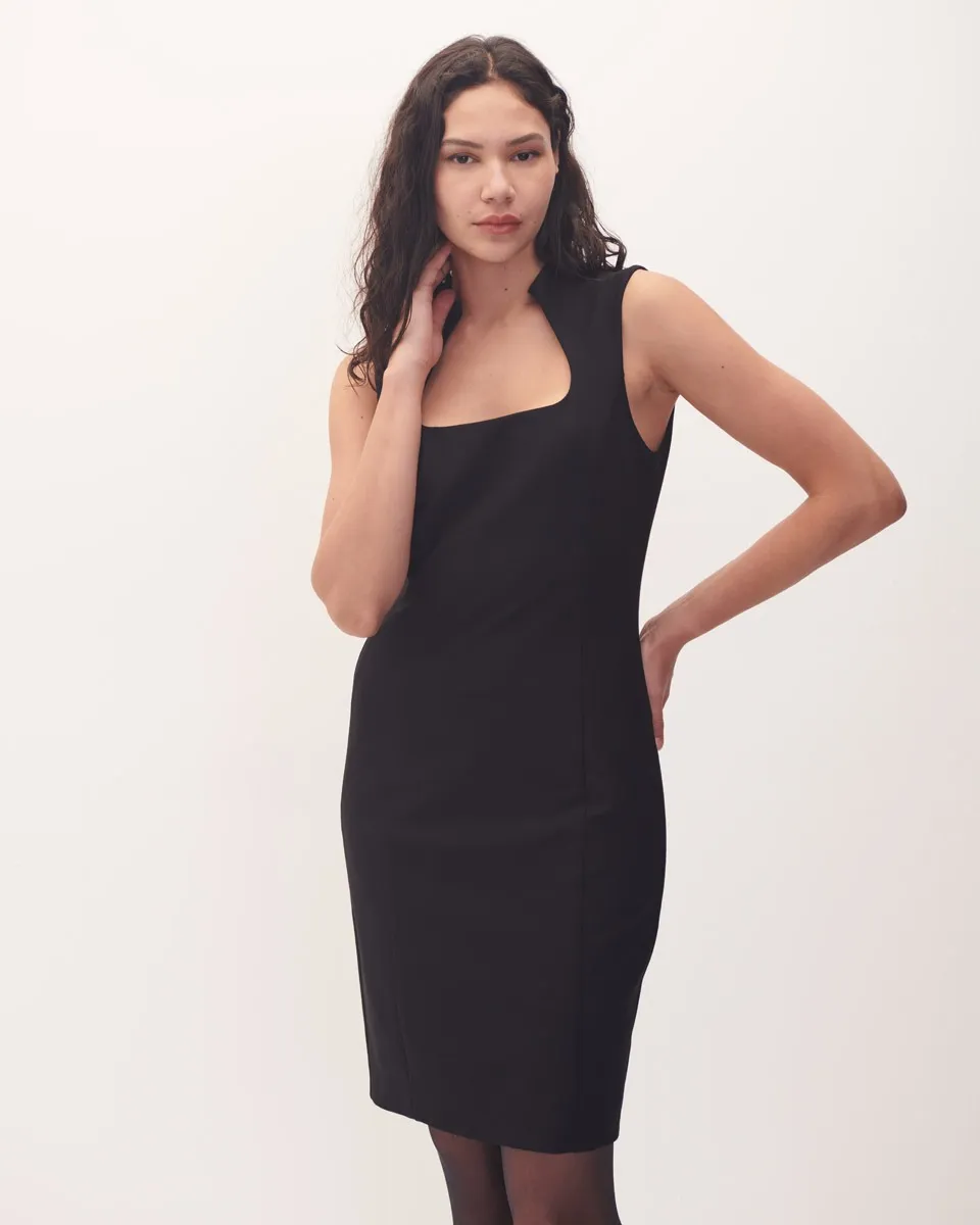 Vestido Negro Lápiz Cuello Con Abertura Detalles Metálicos