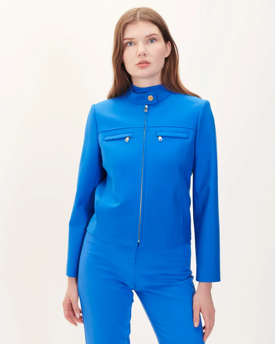 Chamarra Corta Azul Klein Cuello Alto Cierre Doble Acción