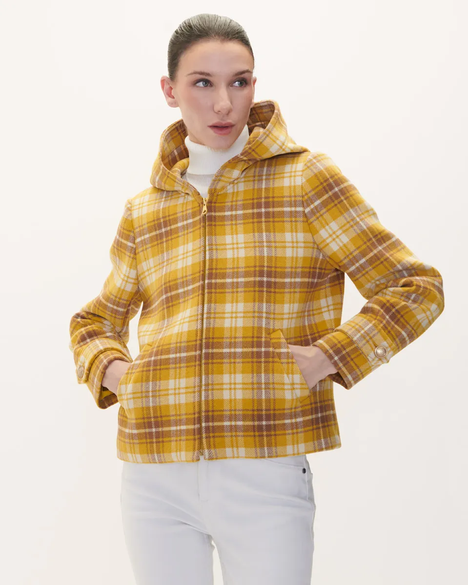 Chamarra Amarilla Corta A Cuadros Con Capucha