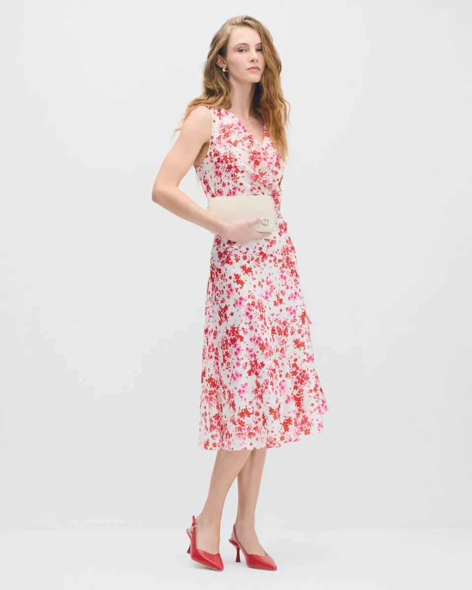 Vestido De Satín Envolvente Estampado Floral