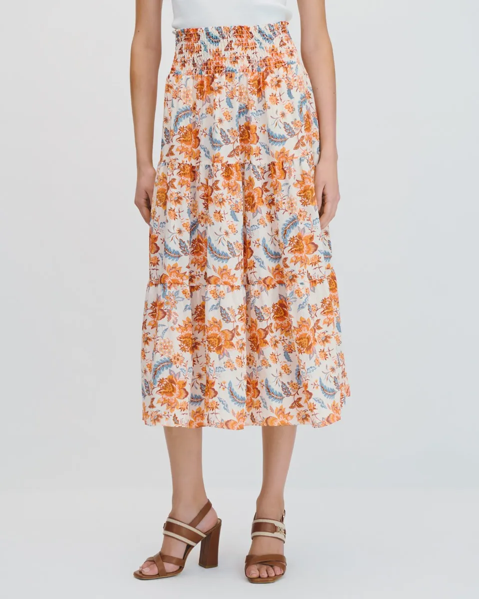 Falda Midi Bohemia Estampado Floral Enresortado En Cintura