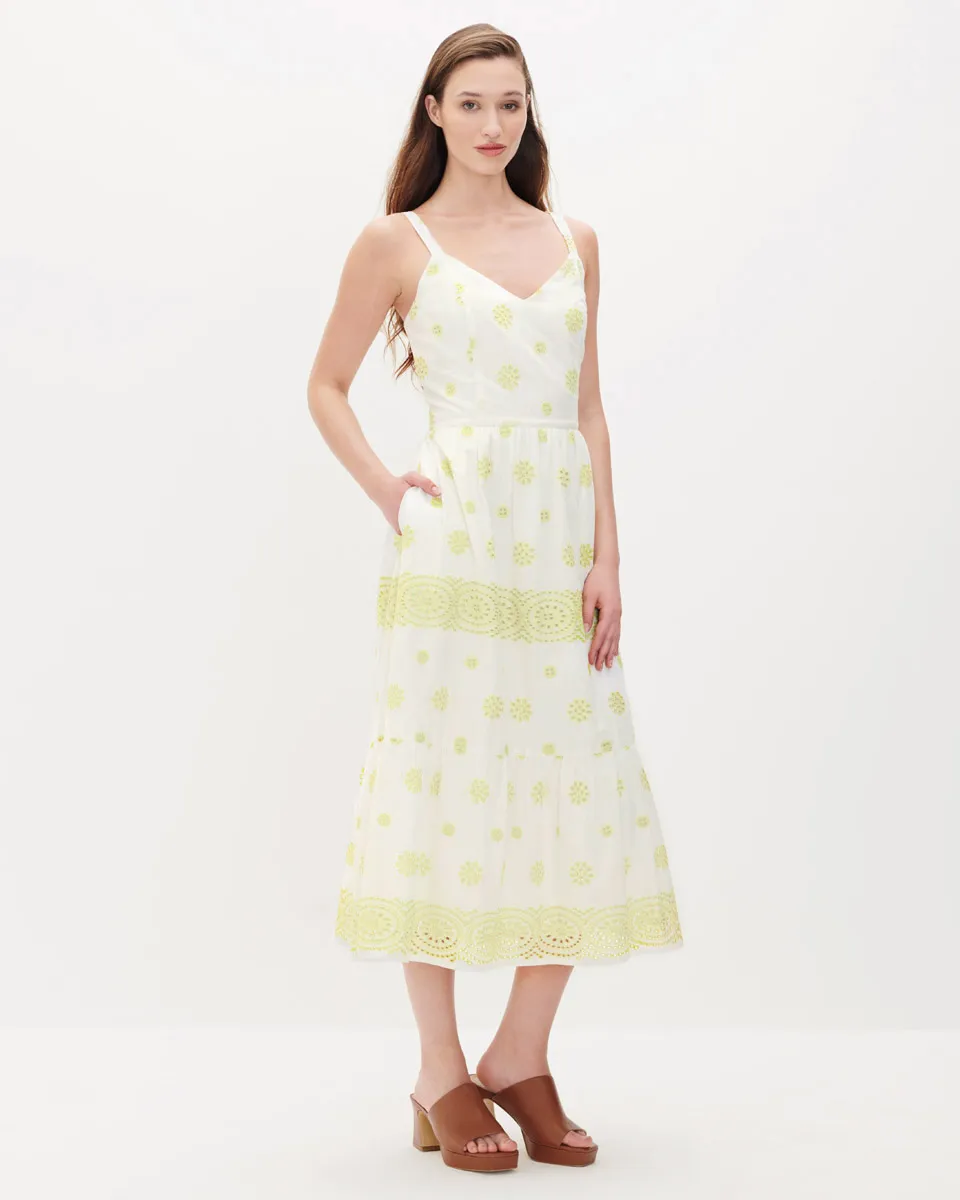 Vestido Midi Bordado Floral Arena Escote Corazón