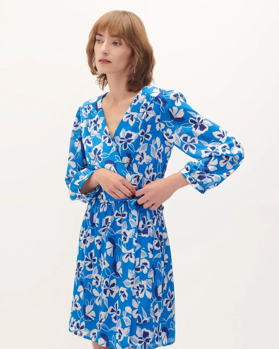 Vestido Midi Bordado Azul Rey Fajilla Drapeada