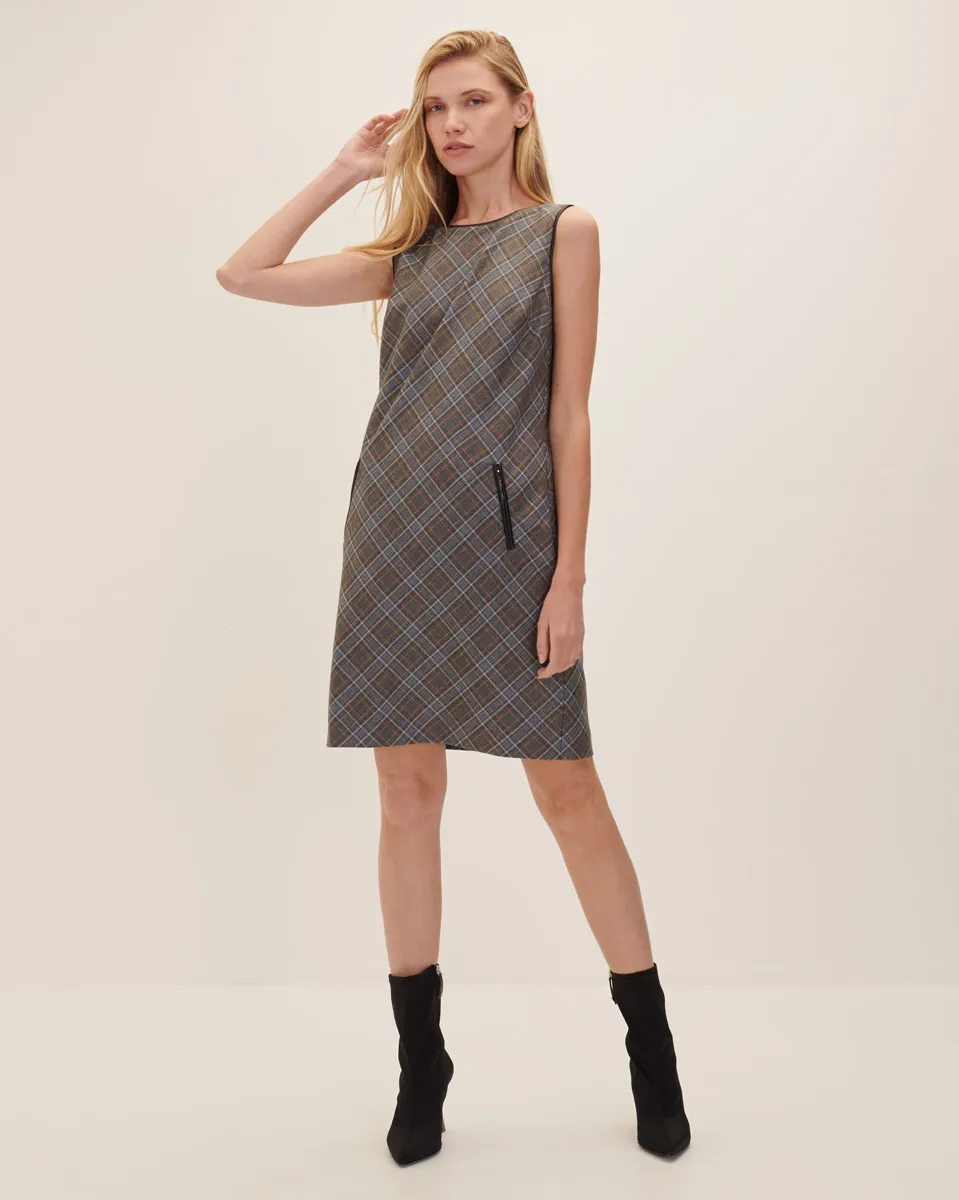 Vestido Gris Silueta H Escote Redondo Príncipe De Gales