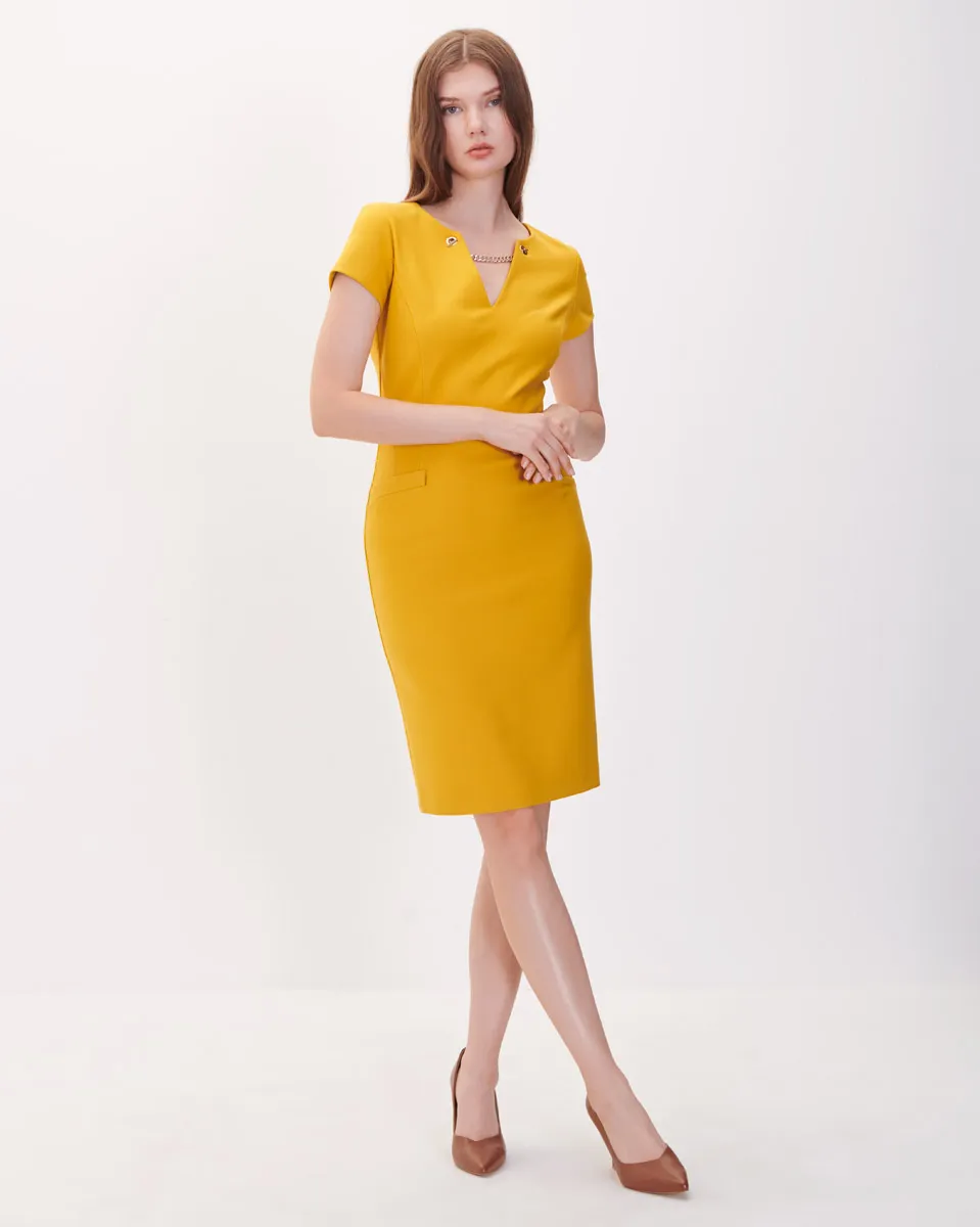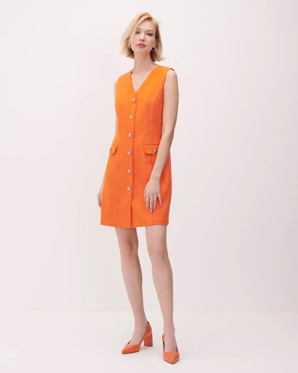Vestido Silueta H Naranja Tweed Botones Metálicos