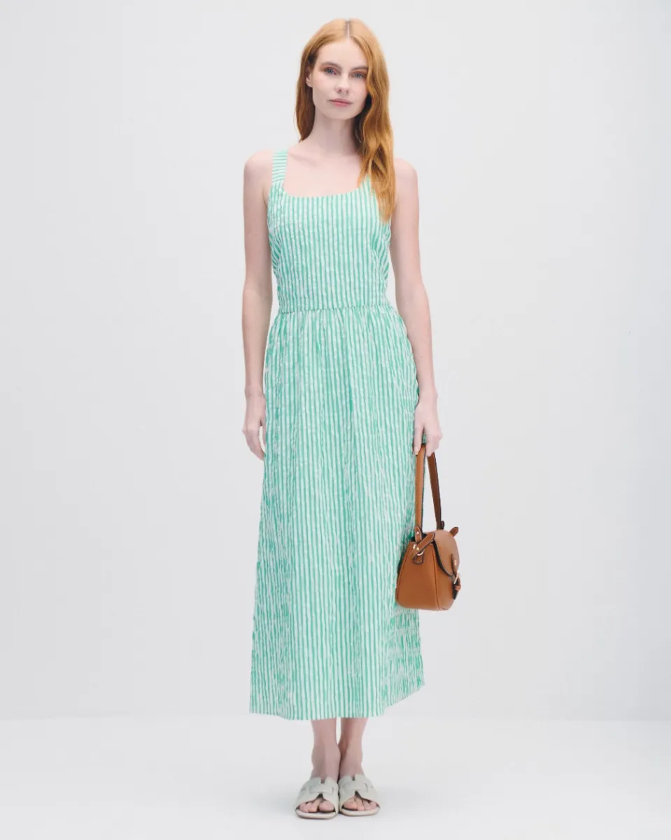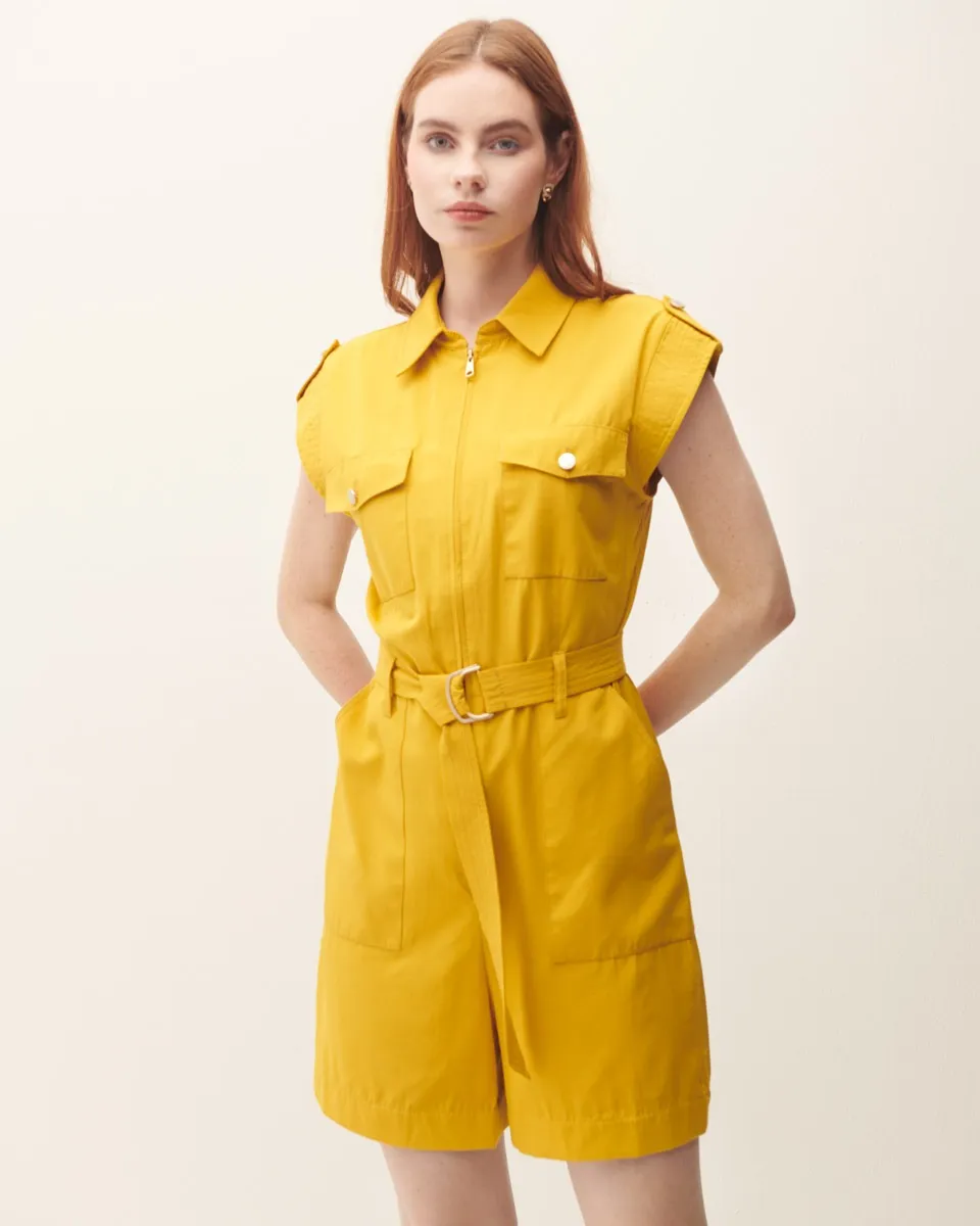 Jumpsuit Corto Recto Fluido Verde Trebol Efecto Corrugado