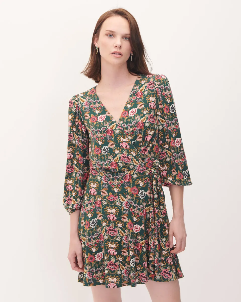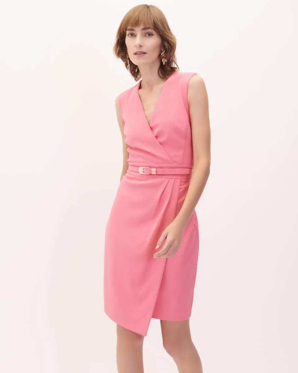 Vestido Rosa Entallado Cruzado Con Cinturón