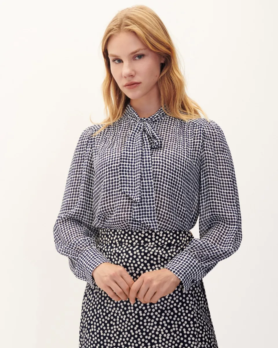 Blusa Estampado Lunares Con Corbatín