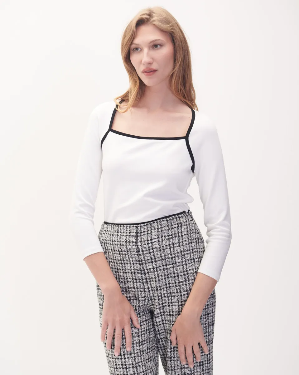 Blusa Blanca Tejido De Punto Ribete Canalé Escote Ojal