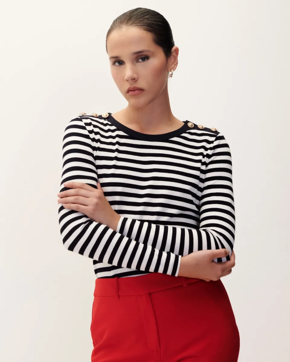 Blusa De Punto A Rayas Botones Dorados