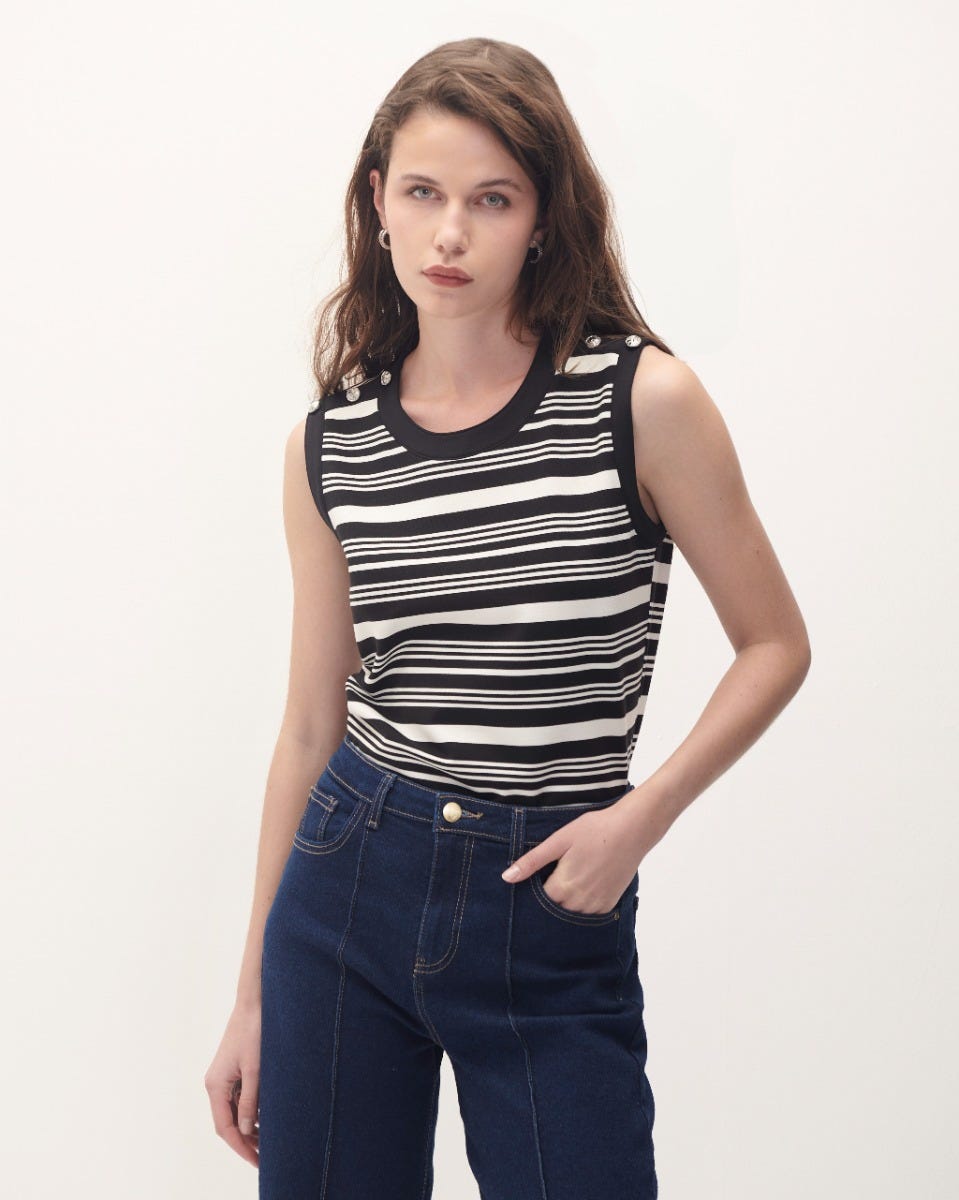 Blusa De Punto A Rayas Blanco Y Negro Botones En Puño