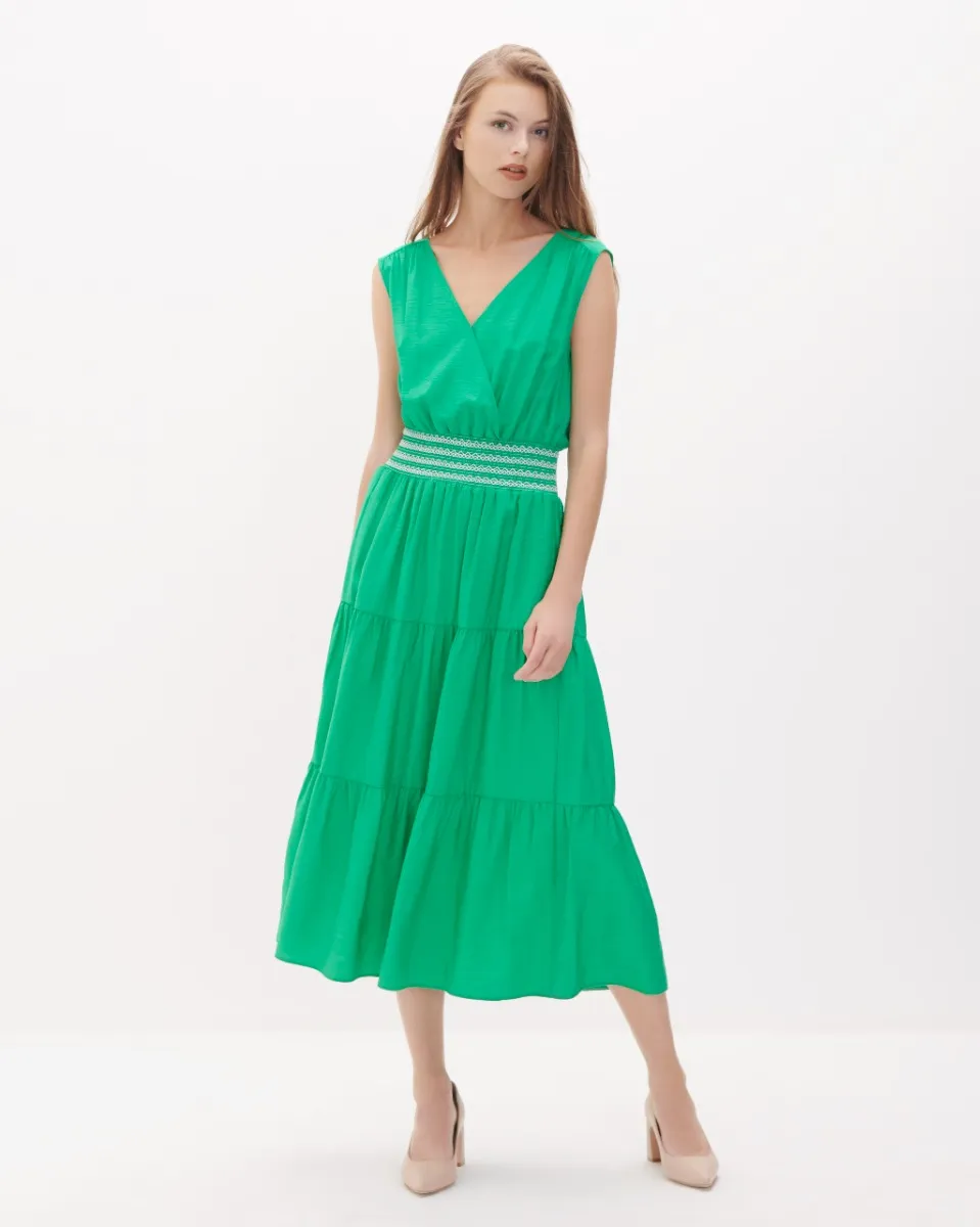 Vestido Midi Halter Cenefa Bordada Con Banda