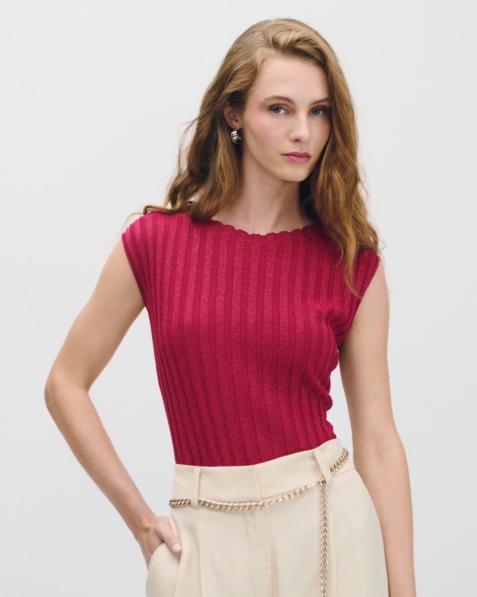Blusa Corrugada Oro Metalizado Laminado Cuello Alto Con Frunces