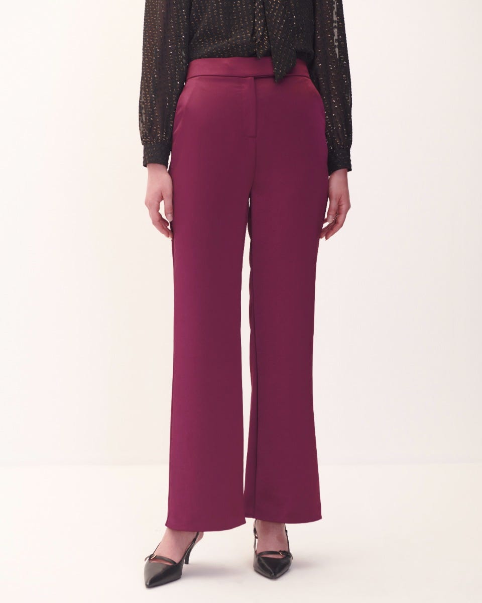 Pantalón Tiro Alto Recto Fluido Satín Vino Pretina Pasada