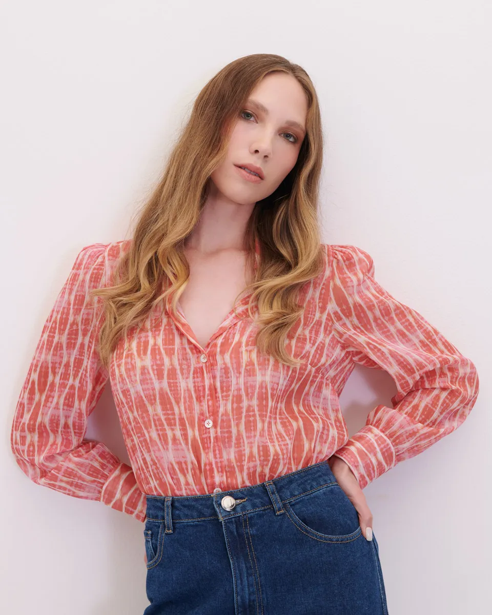 Blusa De Chifón Camisera Rosa Estampado Tie Dye