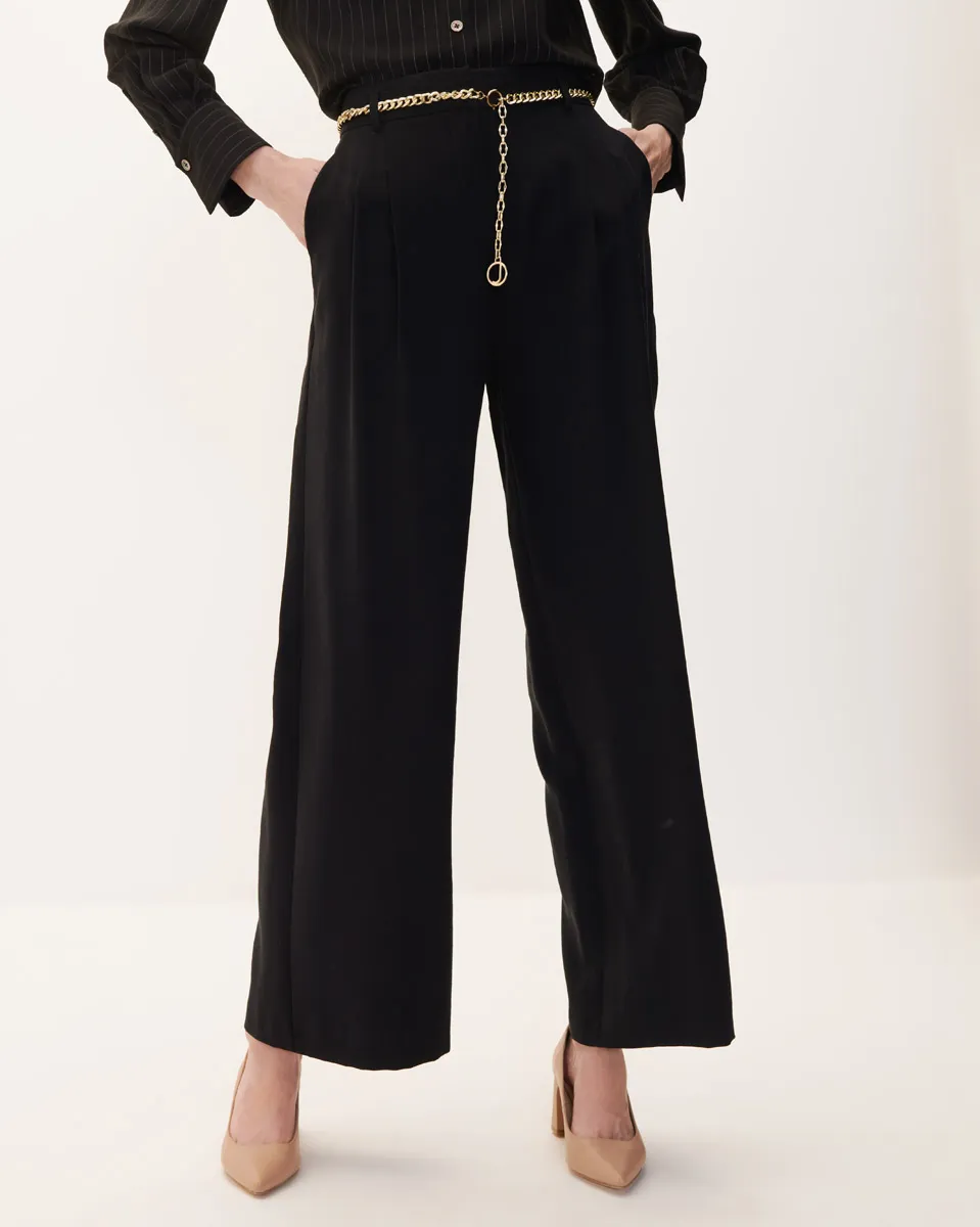 Pantalón Palazzo Negro Tiro Alto Con Cadena