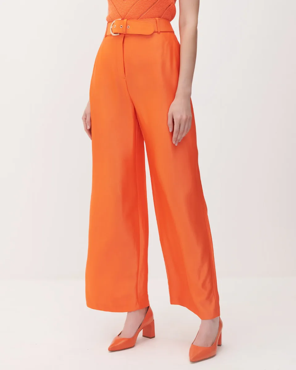 Pantalón Palazzo Tiro Alto Naranja De Satín