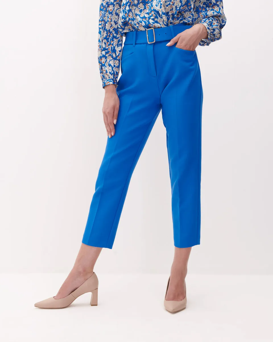 Pantalón Tiro Alto Recto Azul Francia Con Cinturón