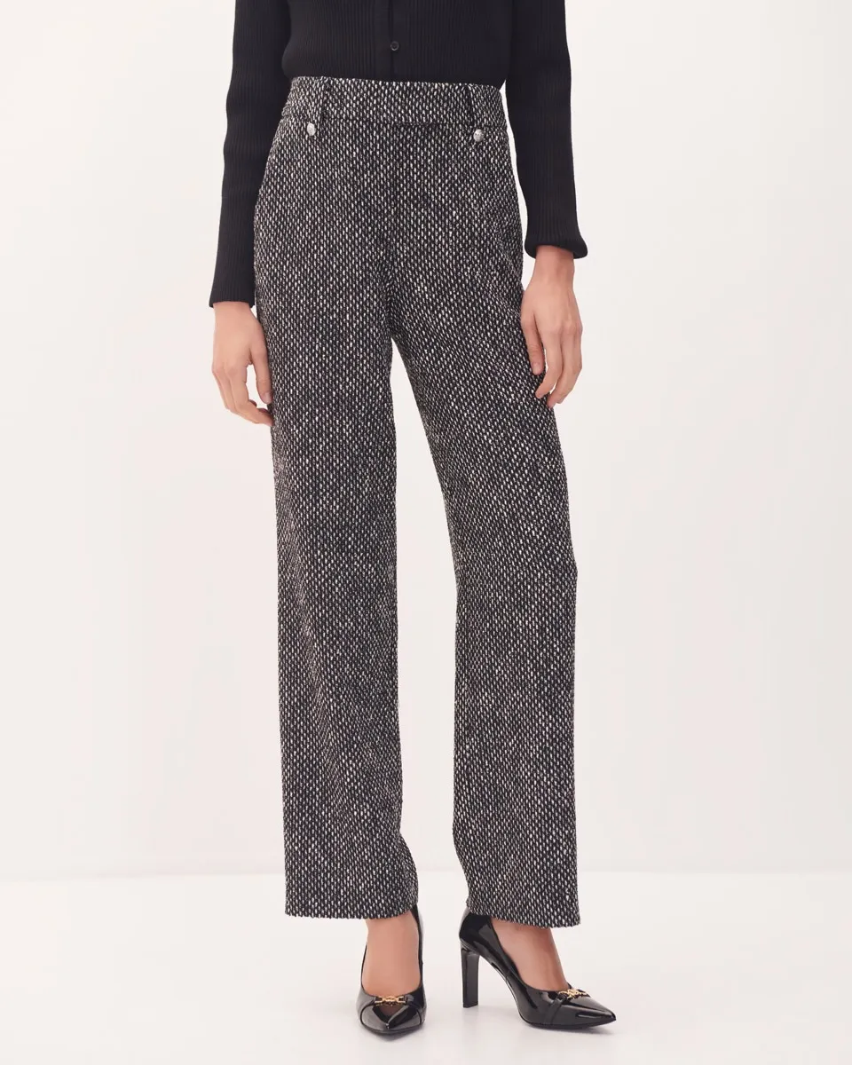 Pantalón Tiro Alto Recto Fluido De Tweed Blanco Y Negro