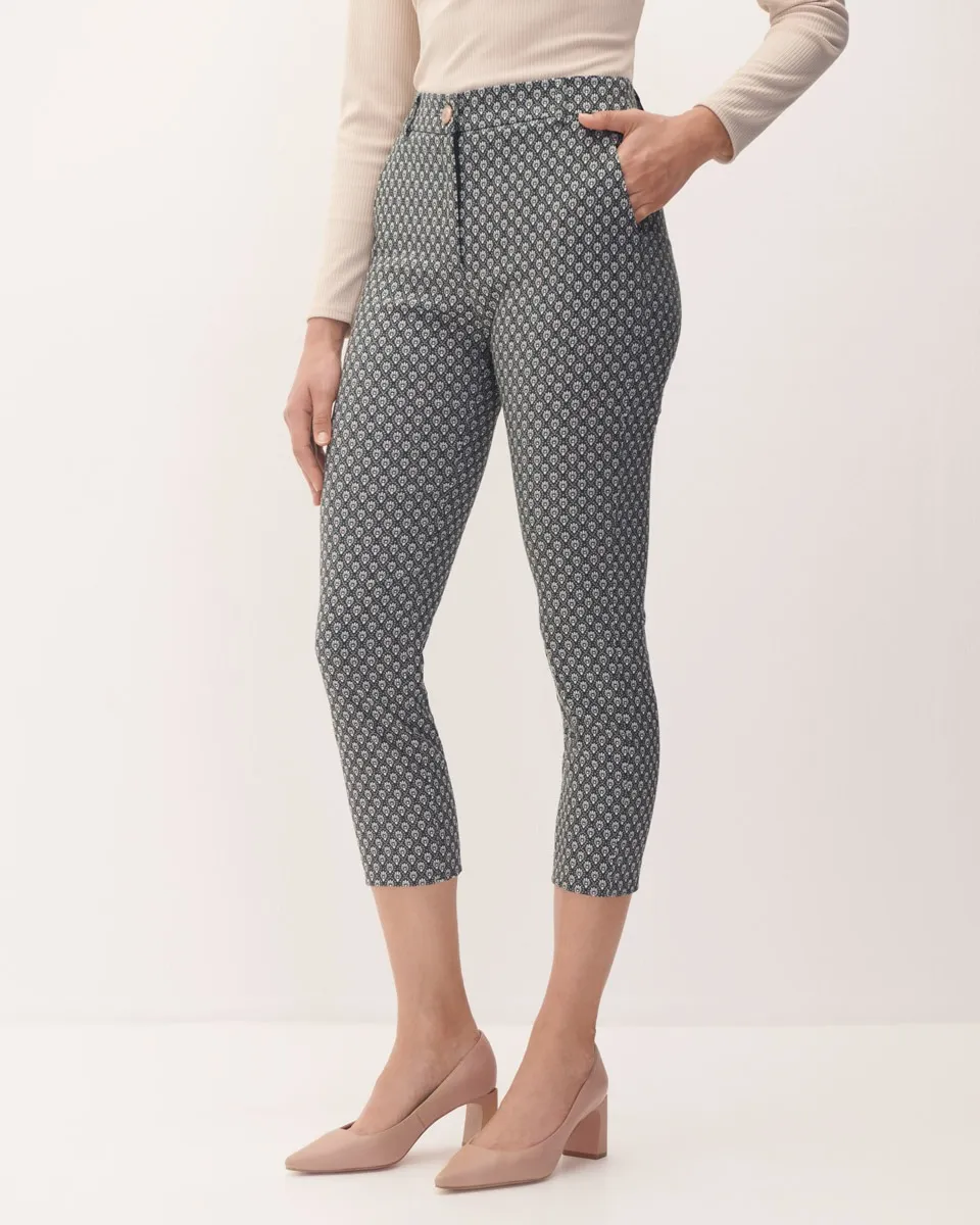 Pantalón Tiro Alto Recto Verde Jacquard Floral