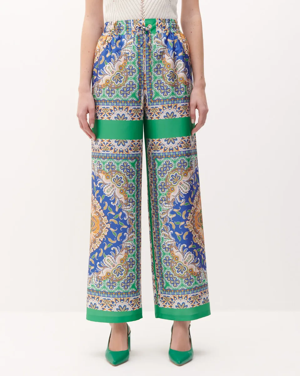 Pantalón Tiro Alto Satinado Estampado Pañuelo