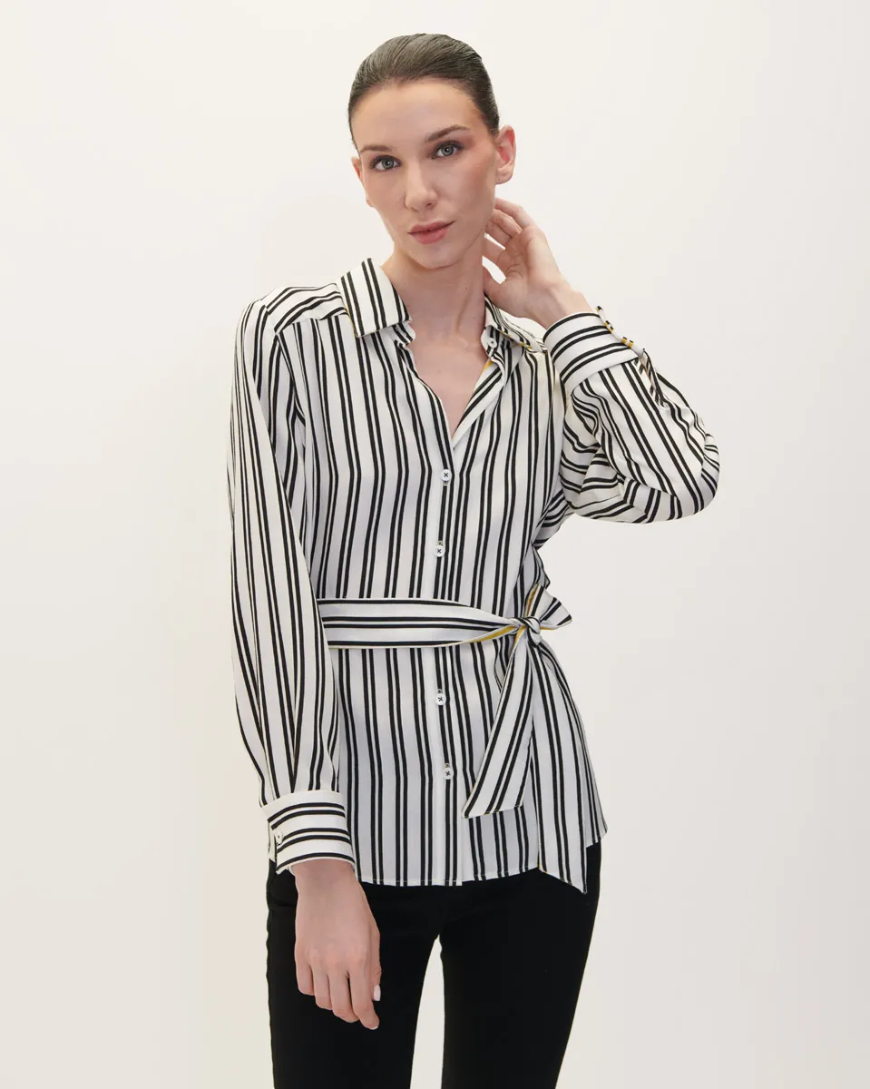 Blusa De Satín Estampado Mini Floral Con Corbatín