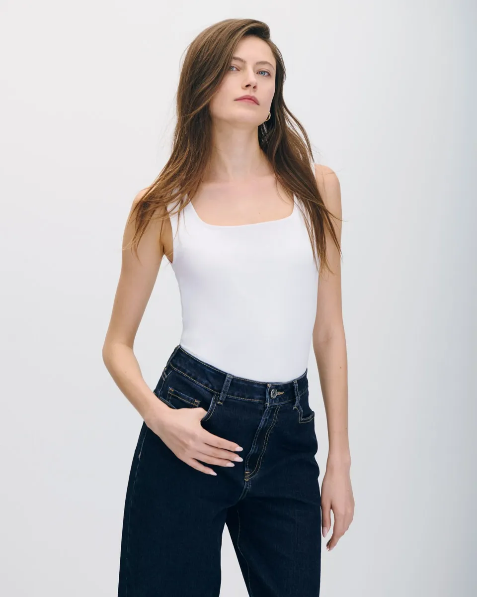 Blusa Blanca Sin Mangas De Jacquard Alforzas En Escote
