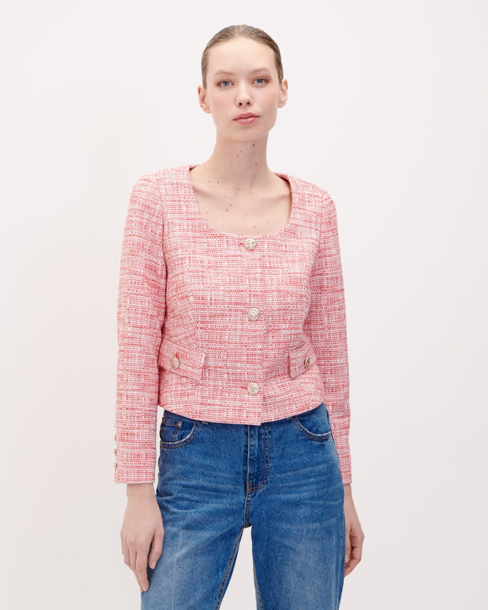 Saco Corto Rojo De Tweed Escote U