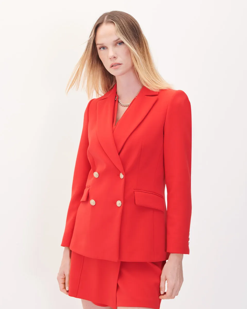 Blazer Cruzado Rojo Escarlata Solapa De Pico