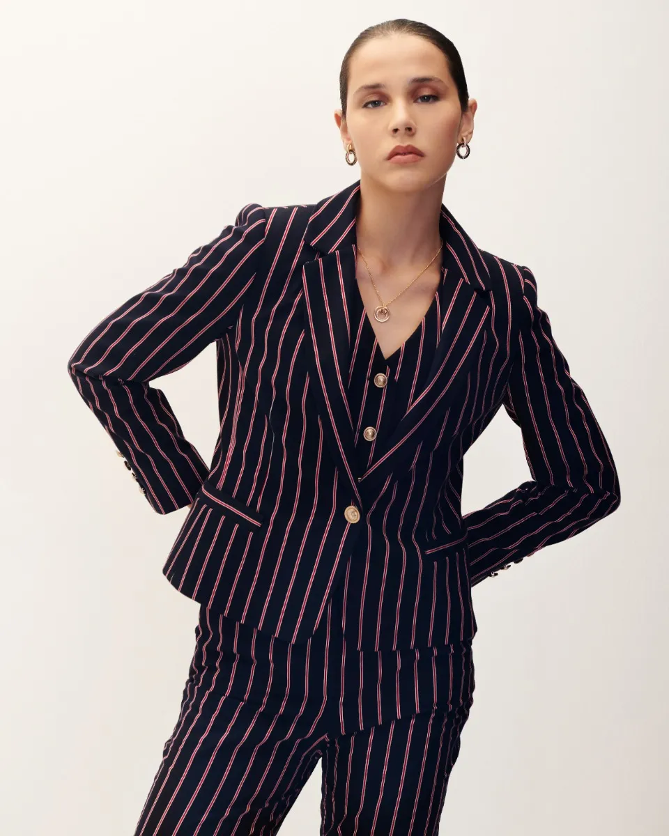 Saco Corto Azul Marino Raya Diplomática Roja