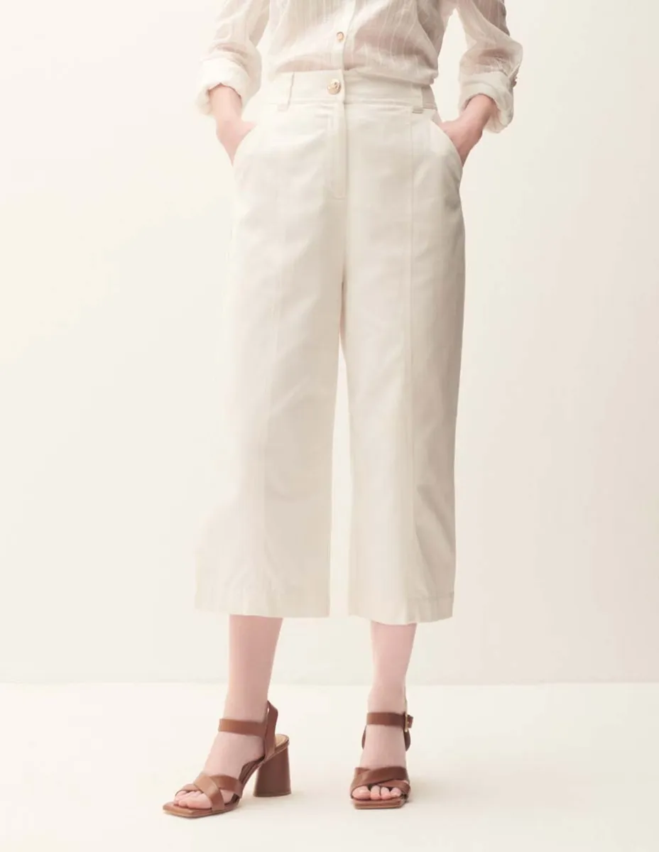 Pantalón Culotte Tiro Alto Off White Con Costilla