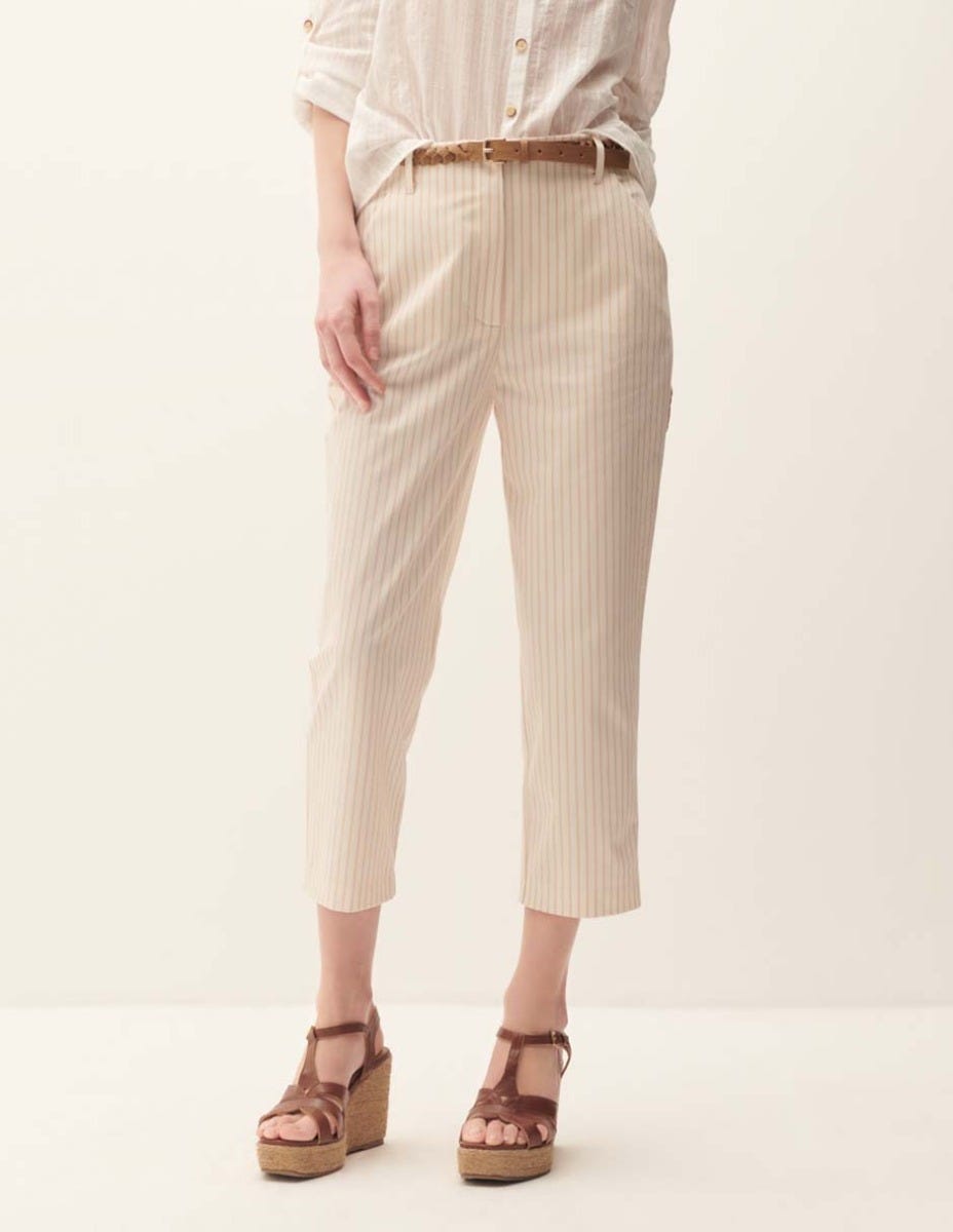 Pantalón Recto Tiro Alto A Rayas Cinturón Trenzado