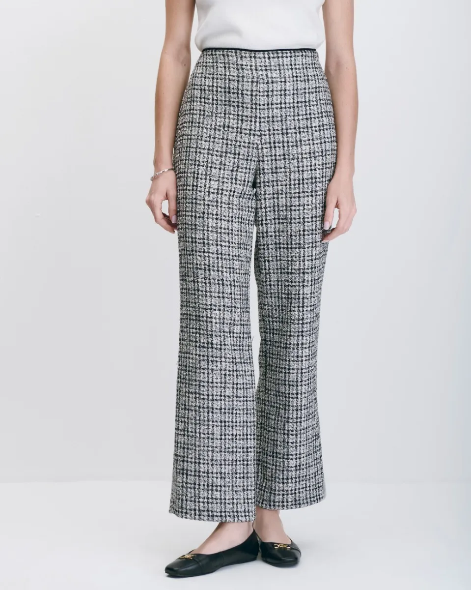 Pantalón Tiro Alto Recto Fluido De Tweed Blanco Y Negro