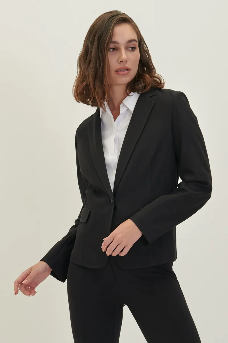 Blazer Negro Cuello Sin Solapa Corte Francés Y Cinturón