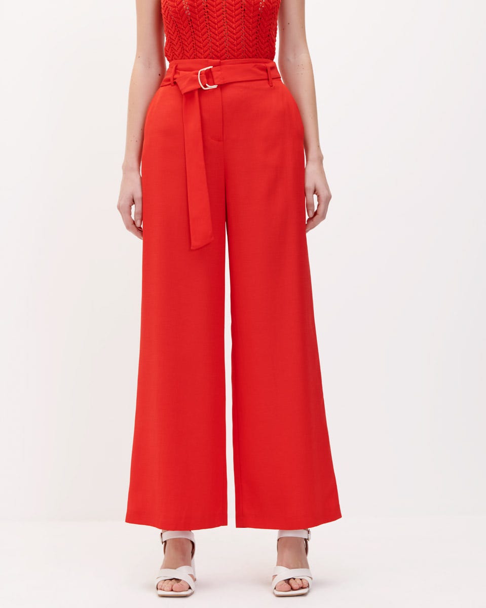 Pantalón Palazzo Rojo Tiro Alto De Lino