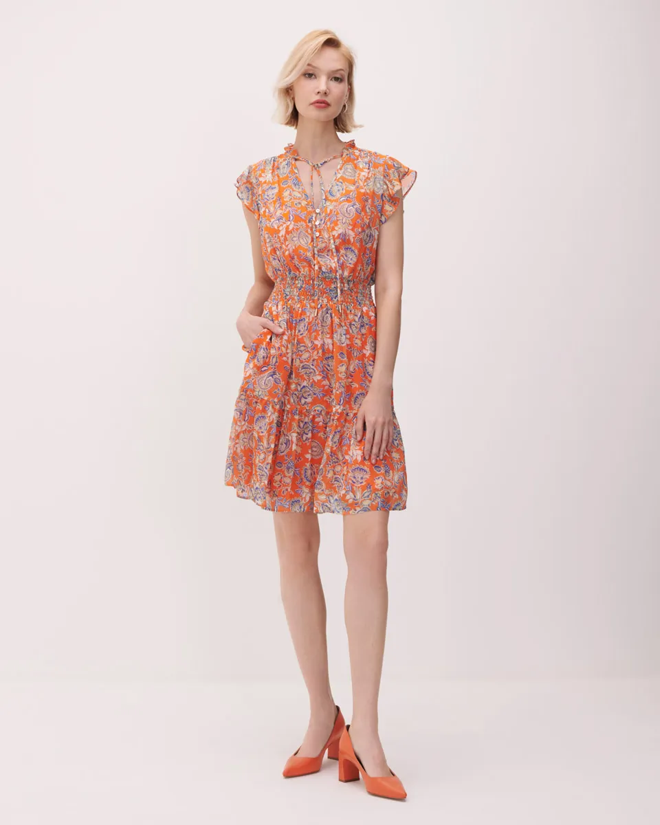 Vestido Estampado Bohemio Fit And Flare Manga Escarola