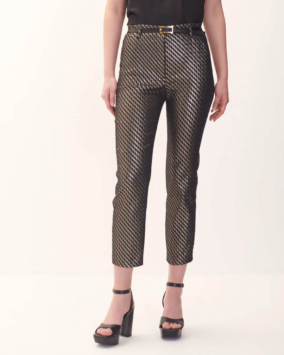 Pantalón Recto Tiro Alto De Jacquard Geométrico Dorado