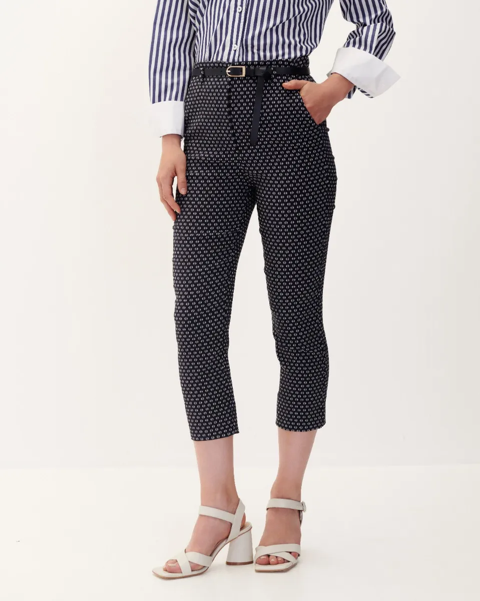 Pantalón Recto Tiro Alto De Jacquard Azul Con Stretch