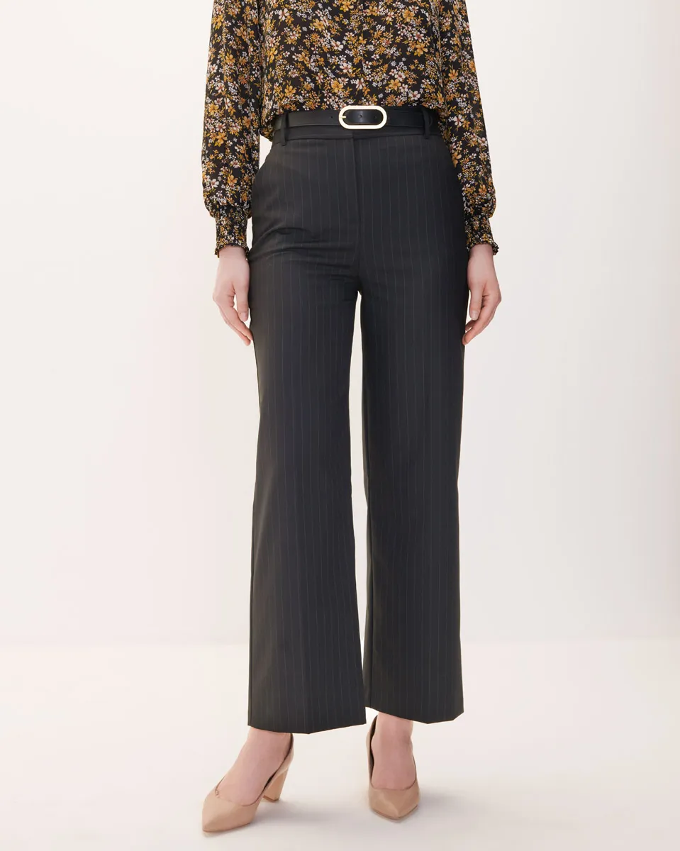 Pantalón Negro Tiro Alto Recto Fluido A Rayas