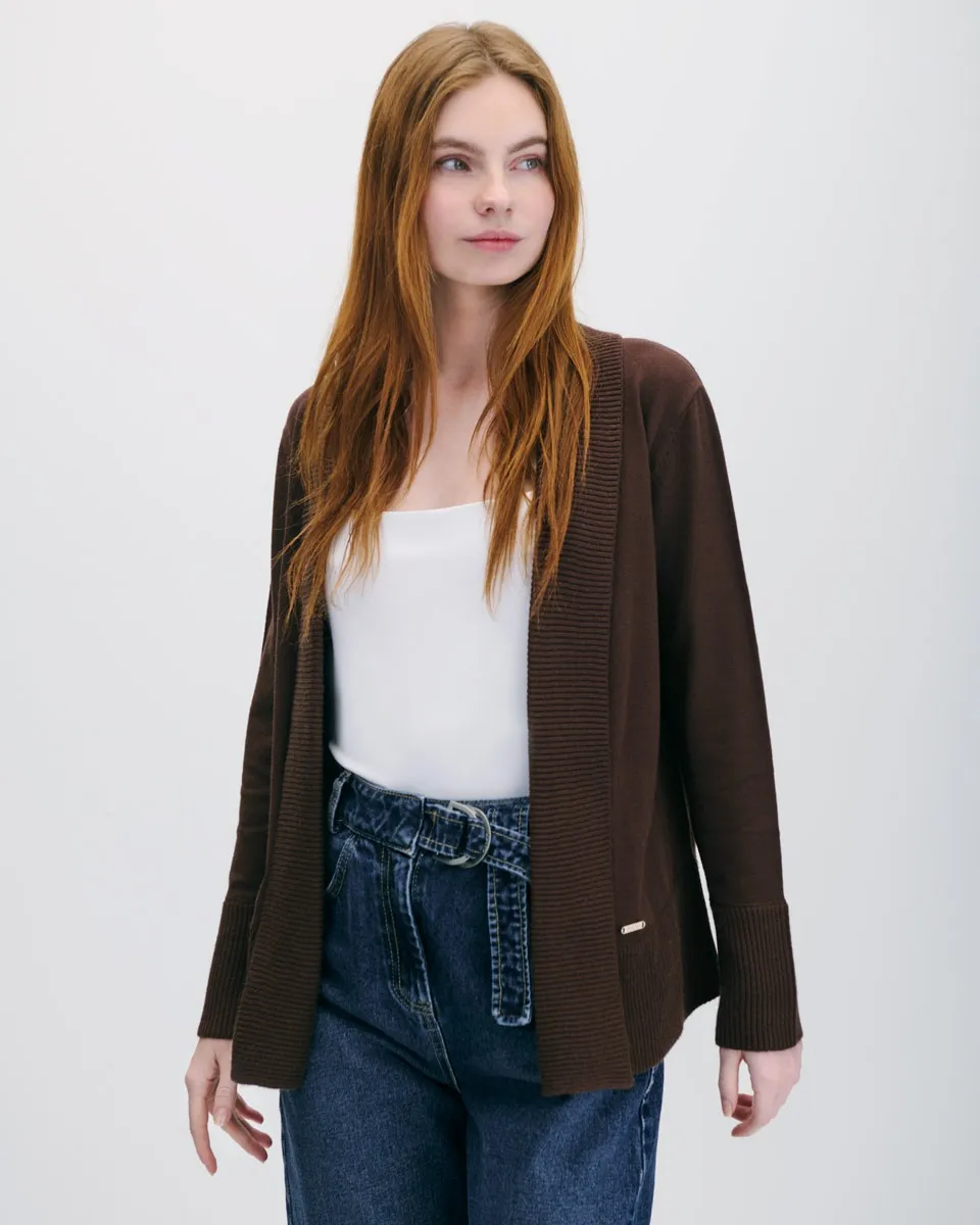 Suéter Tipo Polo Tejido Canalé Canela