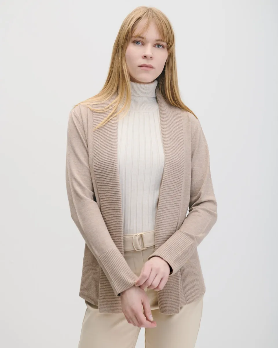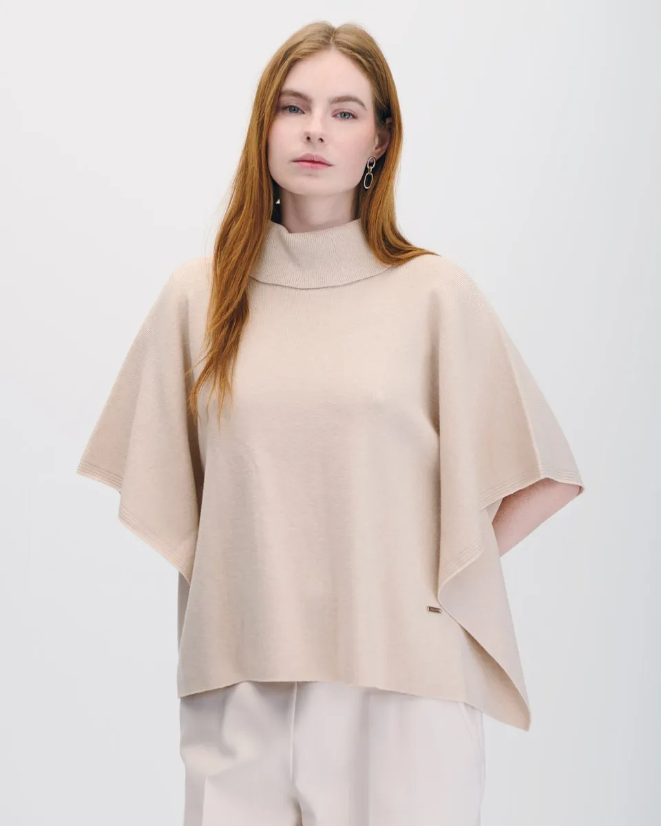 Suéter Tejido De Punto Jaspe Beige Cuello Alto Con Cierre
