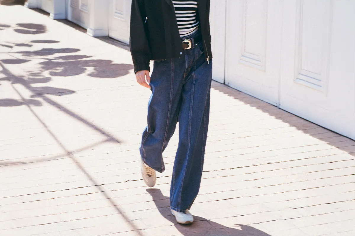 Pantalón Tipo Denim Wide Leg Tiro Alto Pretina Enresortada