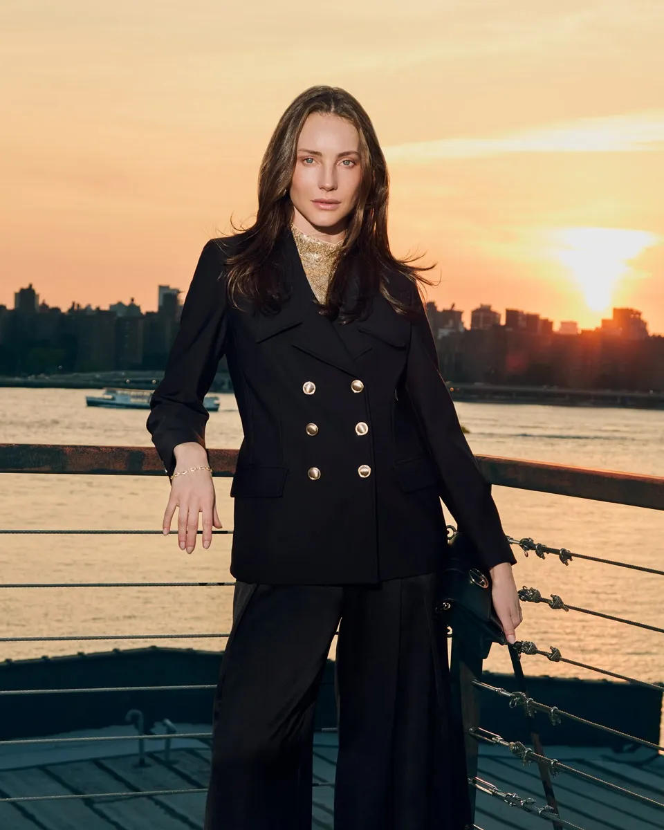 Blazer Negro De Punto Doble Botonadura Y Pespuntes