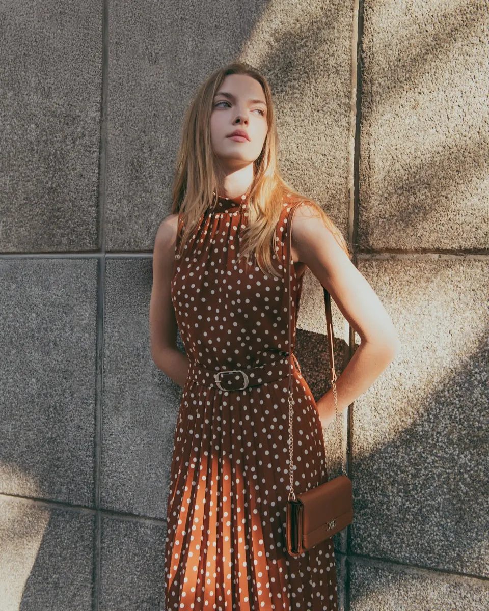 Vestido Camisero De Satín Azul Azulino Estampado Cadenas Manga 3/4